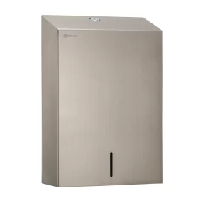 Полотенцедержатель для отдельных бумажных полотенец Z-сложения металлический ‘MERIDA STELLA R’ MAXI (BLACK) Полотенцедержатель ‘MERIDA STELLA R’ MAXI предназначен для отдельных бумажных полотенец Z-сложения. Изготовленный из нержавеющей стали AISI 304 толщиной 1 мм, он обеспечивает надежность и долговечность. Диспенсер вмещает 500 полотенец, что позволяет сократить частоту пополнения. Стильный черный цвет придает ему современный вид и легко вписывается в любой интерьер. Преимущества: Вместимость 500 полотенец позволяет реже пополнять диспенсер, экономя время персонала. Стильный черный цвет гармонично вписывается в любой интерьер. Российское производство. Корпус из нержавеющей стали AISI 304 толщиной 1 мм гарантирует долговечность и прочность. Технические характеристики: Материал: Нержавеющая сталь AISI 304 Цвет: Черный Размеры (Д ? Ш ? В): 38 ? 26,5 ? 12 см Масса: 2,4 кг Тип расходного материала: Бумажные полотенца Z-сложения Вместимость: 500 полотенец Уход: Для регулярной гигиены поверхности используйте очиститель-полироль CEMO. Нанесите средство на протирочную салфетку CM002 и аккуратно протрите поверхность для поддержания чистоты и сохранения внешнего вида.