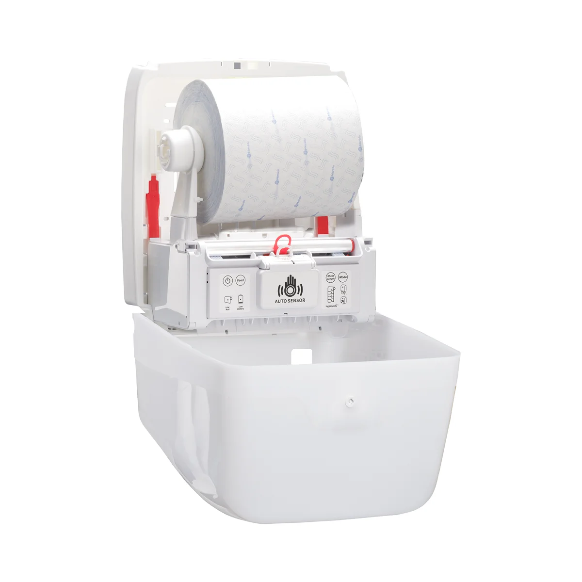 - Встроенный нож обеспечивает точный полистовой расход бумажных полотенец.