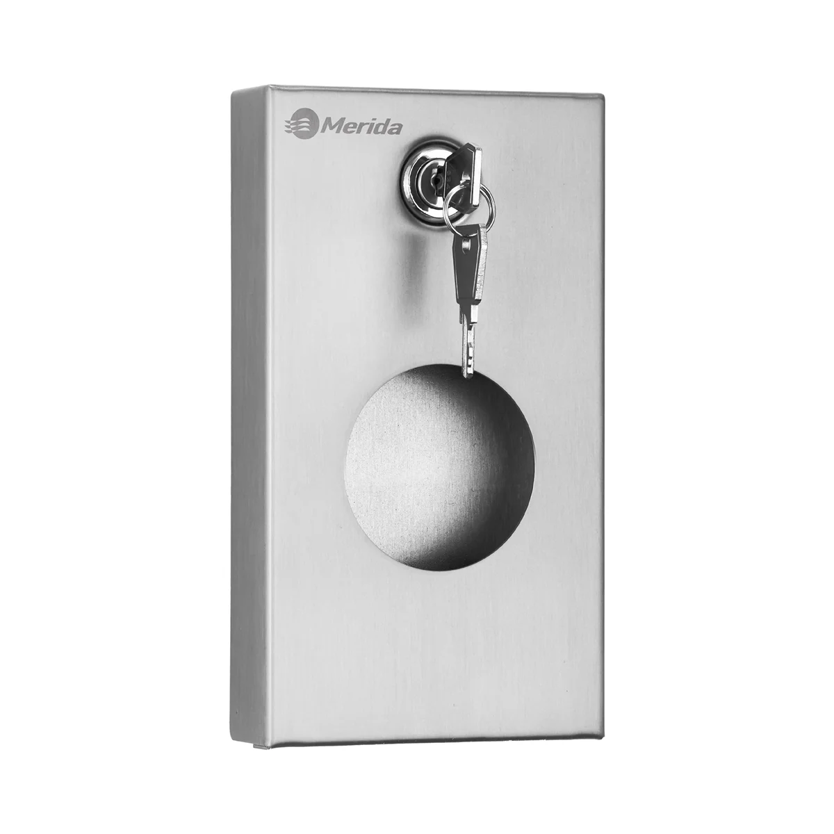 Диспенсер пакетиков для гигиенических прокладок металлический ‘MERIDA STELLA R’ (матовый) – устройство для выдачи гигиенических прокладок, обеспечивающее комфорт и гигиеничность в общественных туалетах. Диспенсер заполняется упаковкой из 30 шт. Удобное окошко позволяет контролировать наличие расходных материалов, что упрощает процесс обслуживания.