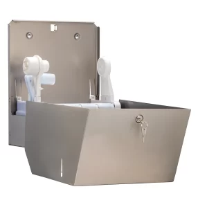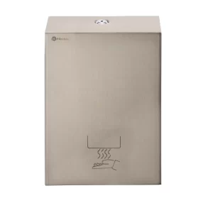 Диспенсер туалетной бумаги в листах металлический ‘MERIDA STELLA R’ (Anti Finger) Элегантный и практичный диспенсер для туалетной бумаги в листах ‘MERIDA STELLA R’ выполнен из нержавеющей стали с покрытием Anti Finger, предотвращающим образование отпечатков пальцев. Его стильный и прочный корпус обеспечивает надежную эксплуатацию в общественных санузлах. Компактный размер делает его удобным для размещения в небольших помещениях. Преимущества: Покрытие Anti Finger, предотвращающее появление отпечатков пальцев. Изготовлен из нержавеющей стали AISI304 толщиной 1 мм. Российское производство. Корпус из нержавеющей стали AISI 304 толщиной 1 мм обеспечивает долговечность и прочность. Технические характеристики: Материал: Нержавеющая сталь AISI304 с покрытием Anti Finger Цвет: Матовый Размеры (Д ? Ш ? В): 12,5 ? 11 ? 26 см Масса: 1,35 кг Вместимость: 400 листов Уход: Для регулярной гигиены поверхности диспенсера используйте очиститель-полироль CEMO. Нанесите средство на протирочную салфетку CM002 и аккуратно протрите поверхность для поддержания чистоты и сохранения внешнего вида.