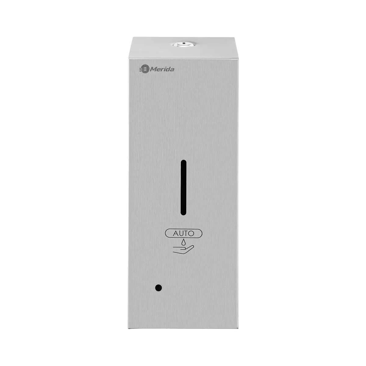 Сенсорный наливной дозатор мыла/геля металлический ‘MERIDA STELLA R’ (матовый), 550 мл. Представляет собой удобное и гигиеничное решение для использования в общественных местах и коммерческих заведениях. Изготовлен из высококачественной нержавеющей стали, обеспечивает надежное и точное дозирование мыла или геля, а также обладает стильным внешним видом. Матовая поверхность придает изделию современный вид и скрывает отпечатки пальцев, что облегчает уход за ним.