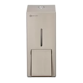 Дозатор жидкого мыла металлический ‘MERIDA STELLA R’ MINI (матовый) 500 мл Дозатор жидкого мыла ‘MERIDA STELLA R’ MINI выполнен из высококачественной нержавеющей стали с матовым покрытием, что делает его долговечным и стильным решением для использования в коммерческих и общественных местах. Благодаря минималистичному дизайну и компактным размерам, он легко вписывается в любой интерьер. Преимущества: Корпус из нержавеющей стали с матовым покрытием. Российское производство. Стильный и практичный дизайн для любого интерьера. Удобство обслуживания и пополнения. Корпус из нержавеющей стали AISI 304 толщиной 1 мм обеспечивает долговечность и прочность. Технические характеристики: Тип: Наливной Материал: Нержавеющая сталь Цвет: Матовый Вместимость: 500 мл Масса: 0,9 кг Размеры (Д ? Ш ? В): 8,3 ? 8 ? 20,5 см Тип расходного материала: Жидкое мыло Merida в ассортименте Уход: Для регулярной гигиены поверхности используйте очиститель-полироль CEMO. Нанесите средство на протирочную салфетку CM002 и аккуратно протрите поверхность для поддержания чистоты и сохранения внешнего вида.