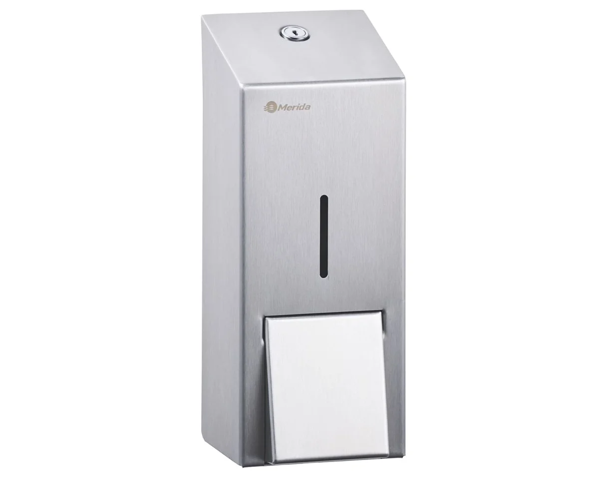 Картриджный дозатор мыльной пены металлический ‘MERIDA STELLA R’ (матовый) Картриджный дозатор мыльной пены ‘MERIDA STELLA R’ с матовым покрытием представляет собой отличное решение для обеспечения гигиеничности и удобства в общественных и коммерческих помещениях. Изготовленный из прочной нержавеющей стали, он отличается высоким качеством и долговечностью, а его матовая поверхность придает стильный и современный вид. Преимущества: Корпус из нержавеющей стали с матовым покрытием, устойчивым к повреждениям. Российское производство. Стильный дизайн, подходящий для любого интерьера. Легкость в обслуживании благодаря картриджной системе. Корпус из нержавеющей стали AISI 304 толщиной 1 мм обеспечивает долговечность и прочность. Технические характеристики: Тип: Картриджный Материал: Нержавеющая сталь Цвет: Матовый Вместимость: 700 мл Тип расходного материала: Картриджное мыло-пена Merida в ассортименте Уход: Для регулярной гигиены поверхности используйте очиститель-полироль CEMO. Нанесите средство на протирочную салфетку CM002 и аккуратно протрите поверхность для поддержания чистоты и сохранения внешнего вида.