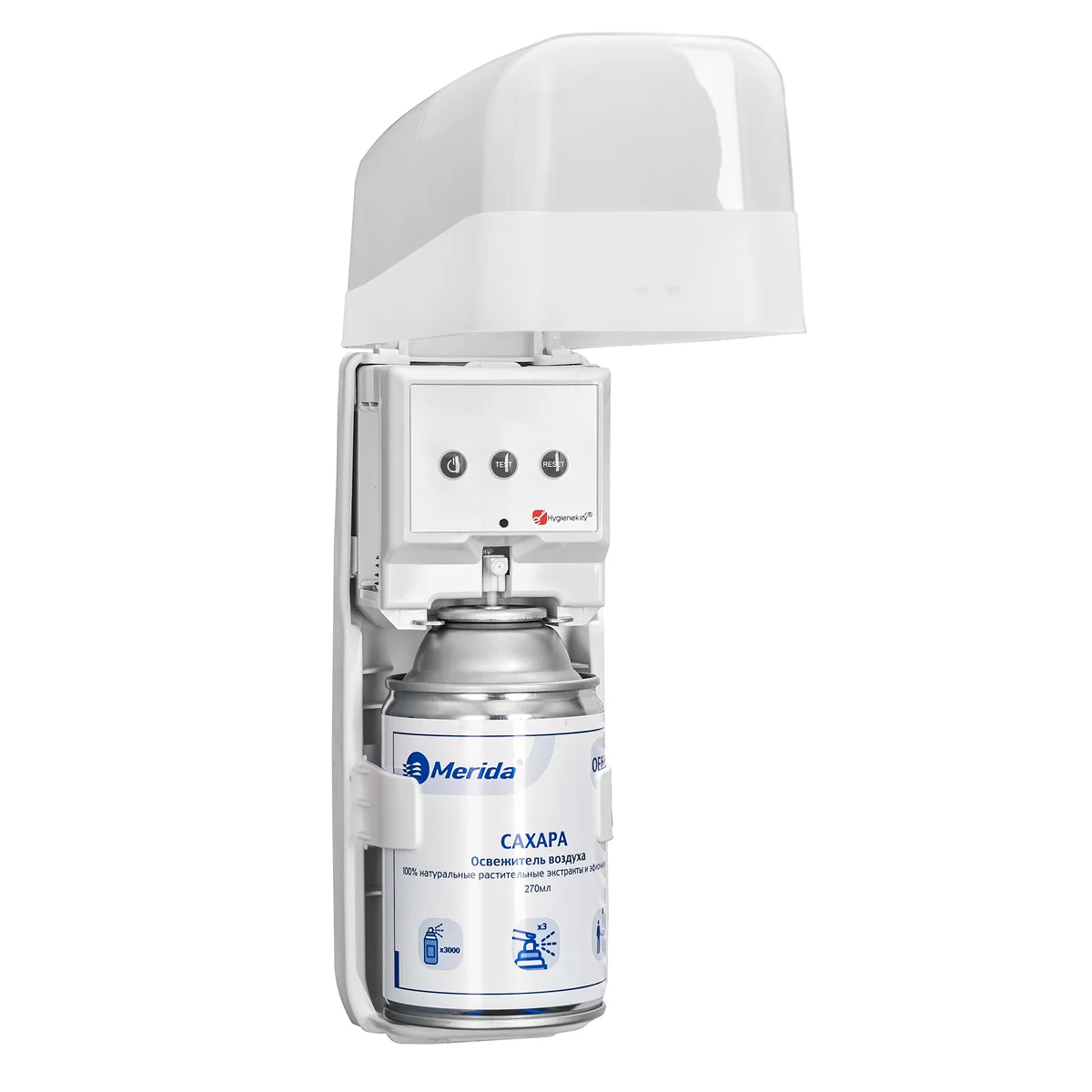 Диспенсер освежителя воздуха MERIDA HARMONY Bluetooth (для баллончика 270 мл) MERIDA HARMONY Bluetooth — это современное программируемое устройство для аэрозольных освежителей воздуха, позволяющее управлять ароматизацией через Bluetooth с помощью смартфона или планшета. Полностью автоматическая работа и регулируемые параметры делают его идеальным решением для создания комфортной атмосферы. Диспенсер обеспечивает высокую эффективность, поддерживая свежесть в помещениях с объёмом до 170 м?, а благодаря функции отслеживания параметров в режиме реального времени с помощью приложения HYGIENEKEY, вы всегда будете в курсе состояния устройства. Преимущества: Полностью автоматическая работа с возможностью настройки всех параметров через приложение HYGIENEKEY. Высокая эффективность, обеспечивающая освежающий эффект в помещениях объёмом до 170 м?. Компактные размеры позволяют легко разместить диспенсер в любом интерьере. Современный дизайн гармонично вписывается в различные стили оформления. Технические характеристики: Вместимость баллончика: 270 мл Размеры: ширина 8,8 см / высота 22,4 см / глубина 8,8 см Обслуживаемый объём помещения: до 170 м? Управление: Bluetooth через приложение HYGIENEKEY Тип питания: Батареи типа АА (не входят в комплект) Комплектующие: Аэрозольные средства ароматизации MERIDA (270 мл в ассортименте) Батареи типа АА Уход: Используйте протирочную салфетку CM002 или MS031 совместно с моющим средством PLOR или CEMO для ежедневной очистки оборудования от пыли и загрязнений. Не используйте абразивные или химические средства для очистки пластиковых поверхностей, чтобы избежать повреждений. Всегда протирайте оборудование насухо и защищайте его от прямого солнечного света, чтобы предотвратить деформацию или изменение цвета материала.