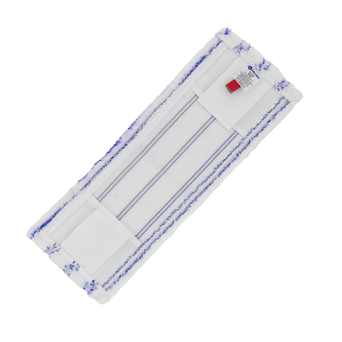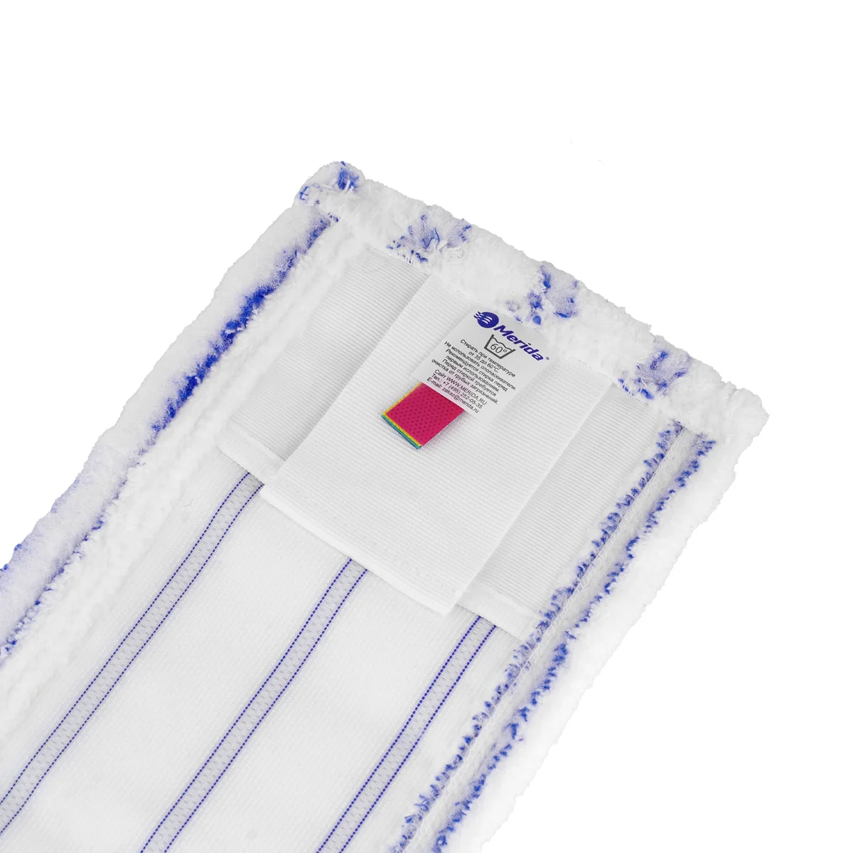Моп из коротковорсовой микрофибры Merida для влажной уборки пола с ярлыками для цветовой кодировки зон уборки. Универсальный – крепится к флаундеру дополнительными клапанами ушками из ткани или с помощью карманов, идеально подойдет для уборки потолка или стен, а также для полов из камня или дерева.