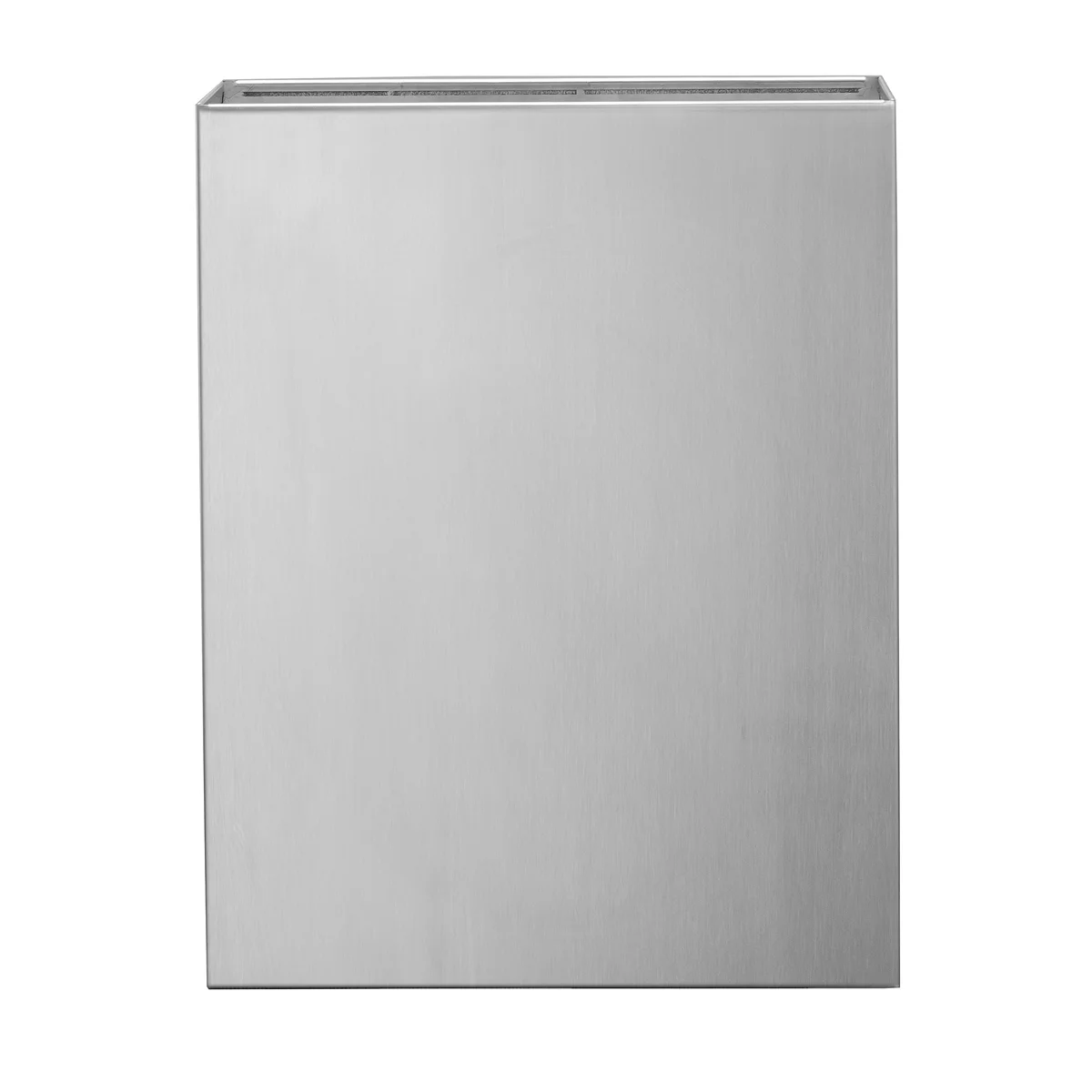 Подвесная корзина для мусора из нержавеющей стали с сатинированной отделкой. Объем 23 литра, крепится к стене, что способствует удобству уборки и повышению уровня гигиены. Оснащена планкой-держателем для надежной фиксации мусорного мешка.