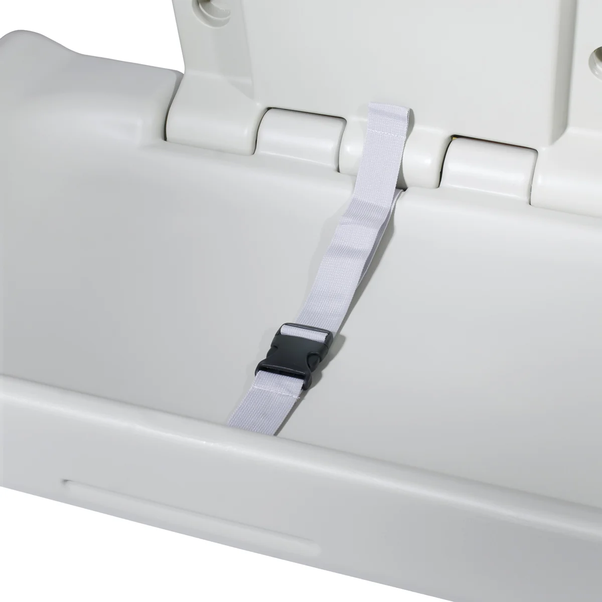 Столик оснащен ремнем безопасности для надежной фиксации ребенка во время использования. Он монтируется к стене, что позволяет экономить пространство и обеспечивает стабильность конструкции. В комплект входит монтажная схема для удобства установки.