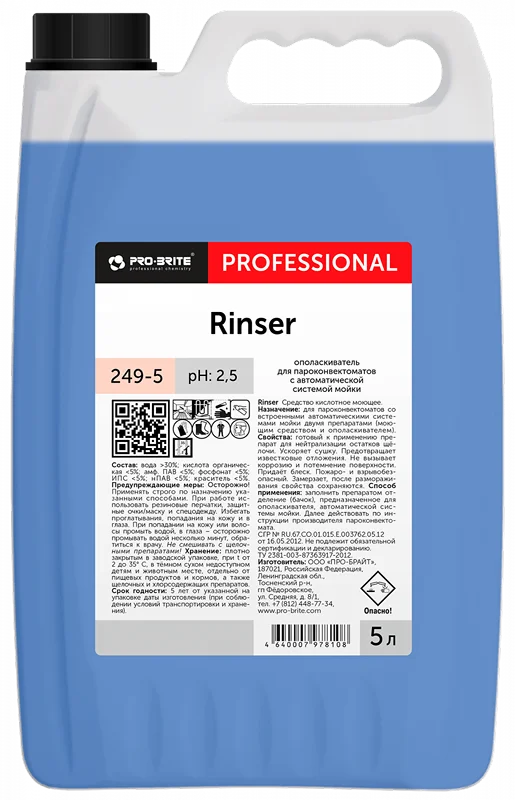 Ополаскиватель для пароконвектоматов с автоматической системой мойки. Предназначен для использования в пароконвектоматах со встроенными автоматическими системами мойки двумя препаратами: моющим средством и ополаскивателем.