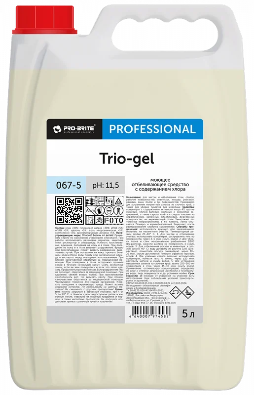Гелеобразный сильнощелочной концентрат с содержанием активного хлора 4%, прозрачный светло-желтого цвета с хлорным запахом. Эффективен против пищевых, улично-бытовых, мыльных и слизистых загрязнений, серого налета и следов плесени на керамических, каменных, пластиковых и деревянных поверхностях, а также на нержавеющей стали. Уничтожает патогенные микроорганизмы, включая плесень. Легко смывается. Пожаро- и взрывобезопасен. После размораживания свойства сохраняются.