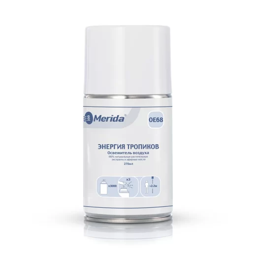 Аэрозольные освежители воздуха MERIDA включают в свой состав концентрированные ароматизаторы из натуральных эфирных масел. Рецептура не содержит в составе этилового спирта и углеводородного пропеллента (пропан/бутан/изобутан).