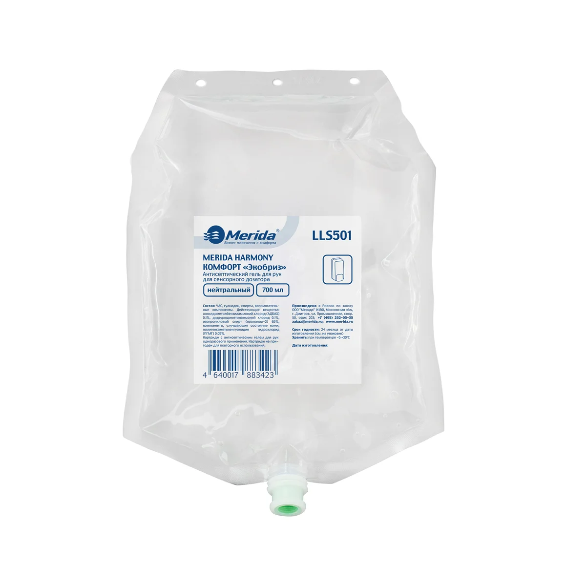 Дезинфицирующий гель для рук Merida обладает антимикробной активностью, а ухаживающие компоненты в составе не сушат кожу рук.