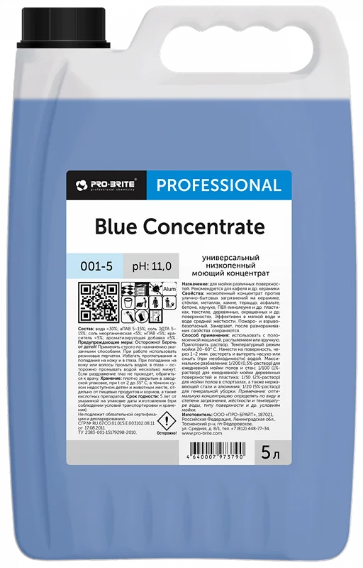 Жидкий низкопенный концентрат, прозрачный синего цвета с ароматом морской свежести, против улично-бытовых и лёгких жировых загрязнений на керамике, стекле, металлах, камне, терраццо, асфальте, бетоне, каучуке, ПВХ-линолеуме и др. пластиках, текстиле, деревянных, окрашенных и др. поверхностях. Эффективен в мягкой воде и воде средней жёсткости (0–8° Ж). Не содержит щёлочь. Пожаро- и взрывобезопасный. Замерзает, после размораживания свойства сохраняются.