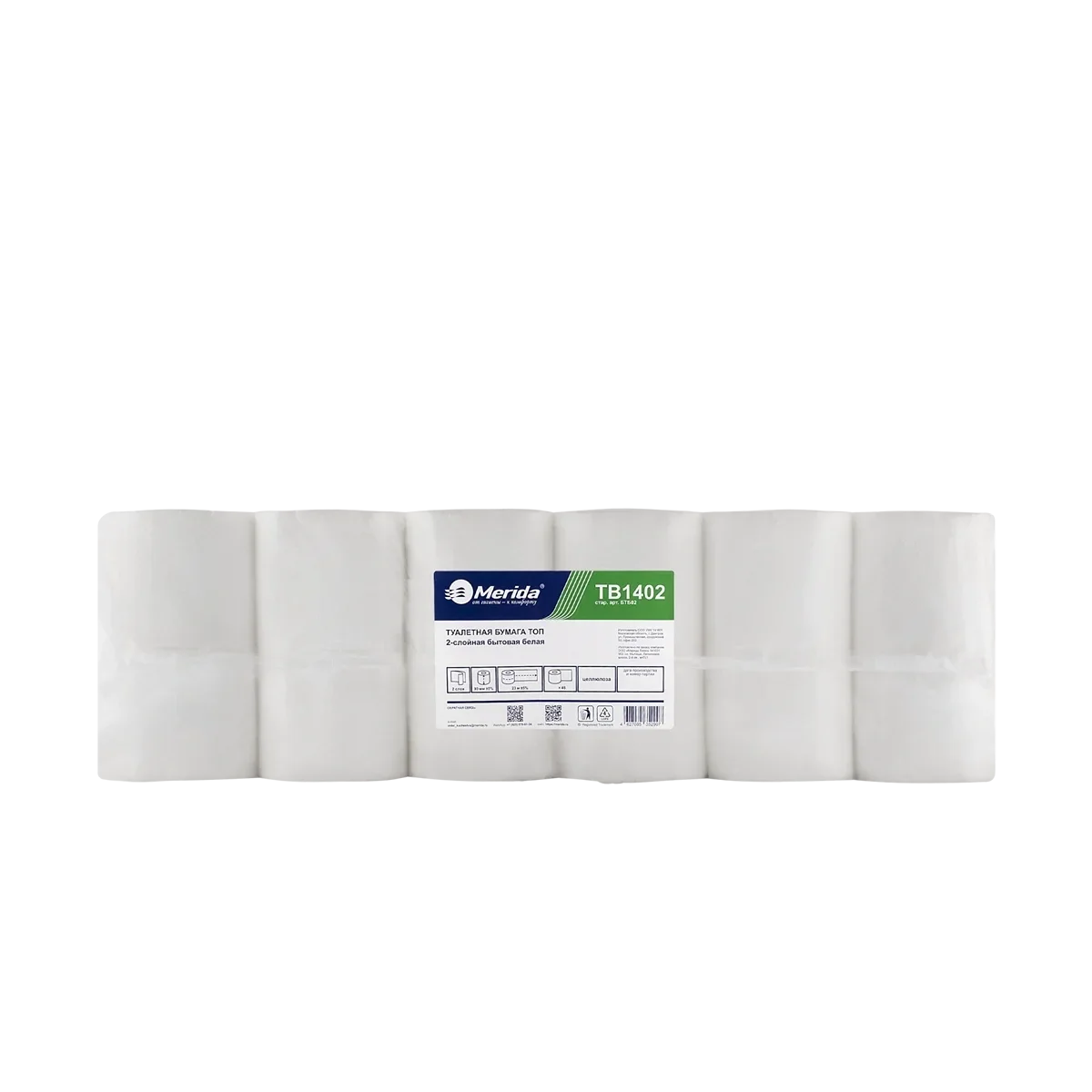 Двухслойная бытовая туалетная бумага в рулонах Merida изготовлена из 100% целлюлозы. Она оснащена перфорацией и тиснением, что обеспечивает удобство использования и повышенную прочность.